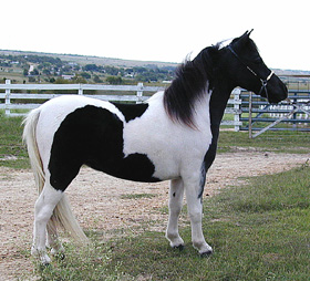 This beautiful black and white pinto mare was bought by our daughter, Lauren. Her first foal was by Reserve National Champion, Little America's Sterling Fantastic, named Little America's Fantastic Rosaline who has been multiple Top Ten in AMHA World Shows.