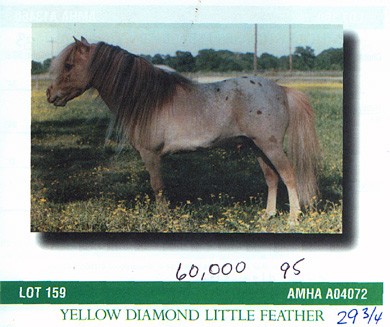 Ruby Feather's sire was one of the best known apps in the country; he sold for $60,000 at the Hunt House Dispersal. This mare is proving to be an outstanding asset to our appaloosa program. So far every foal has been an outstanding appaloosa, and we used one of her sons in our breeding operation for two years.