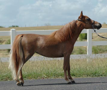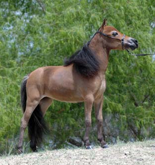 This tiny mare has the quality and style that every serious breeder is seeking! Isis is a remarkably beautiful mare with a long neck and goes back to Orion-Light Van't Huttenest two times. Her sire is a grandson of two time World Champion, Brewer's Orion Classic and has six World Titles in her pedigree.