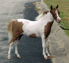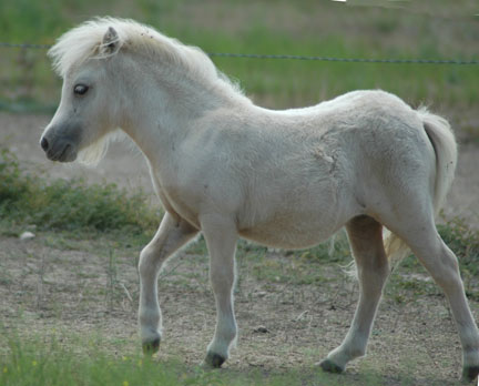 This tiny little mare is one of only two offspring of Kickin Da Vinci. We will probably keep her as one of our "private collection" of the tiniest of our breeding. For more information, click name above.