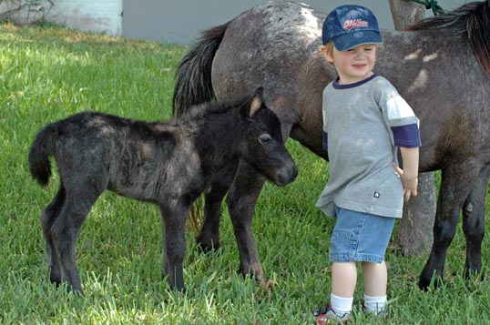 We celebrated the birth of our first grandchild, Grayson Tobias Taylor, May 10, 2005, and welcomed his first horse the next day! Grayson's mother, Lisa, showed the grand dam of this filly when she was a child, so this is a very appropriate start to his herd!