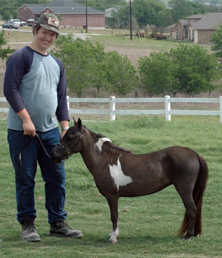 This showy marey belongs to our older daughter, Lisa Taylor, and is the fourth generation of beautiful pintos. You can see them all when you visit, or as you surf these pages. Showtime was named such because she was foaled when Lisa was at Baylor University performing in a singing group called Showtime.