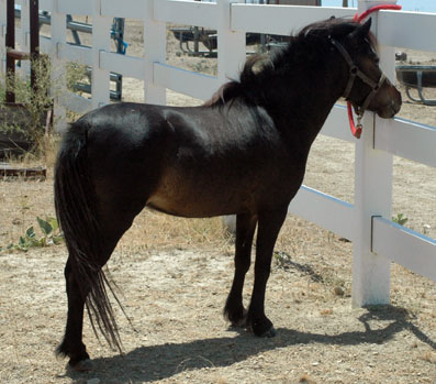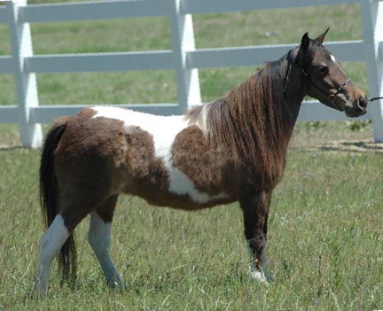 This is one of two daughters of the 1995 National Champion 28" & Under Stallion, Indian Snow. She is actually a pintaloosa granddaughter of twice National Champion Brewer's Classic Supreme, a great-granddaughter of National Grand Champion Brewer's Orion Classic, and, if that isn't enough, also Reserve National Champion, Yashica-Light Van't Huttenest.
