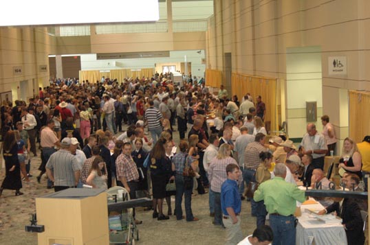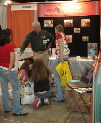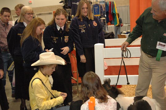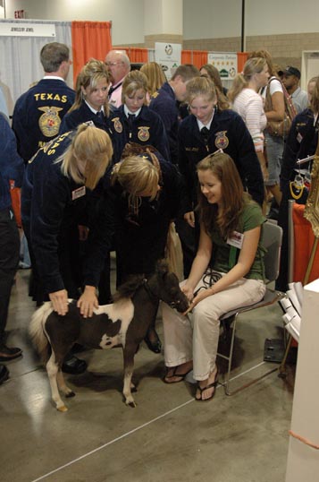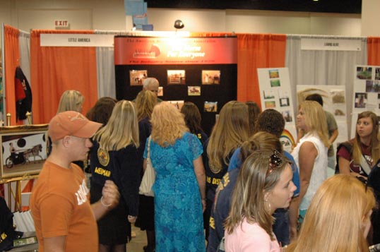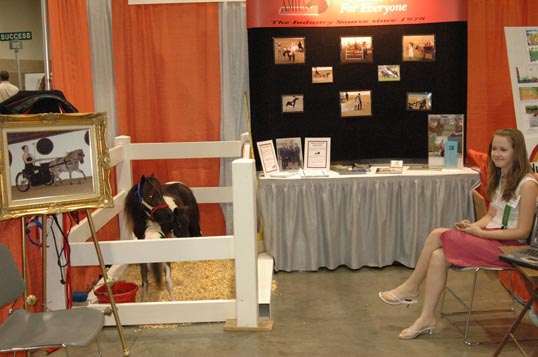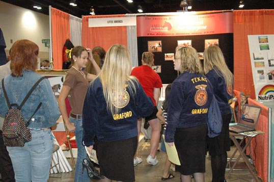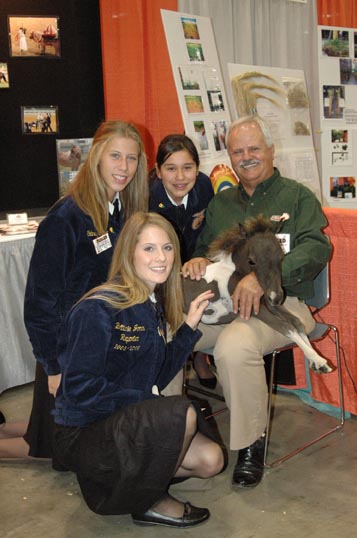 We presented the idea to the Youth Committee at AMHA, but they felt that it would be "unfair" of them to sponsor a booth at one state convention and not all of them, which they couldn't afford. Because Lauren was so convinced that it was an excellent opportunity that could not be missed, we decided to go ahead and do it ourselves, utilizing the booth display that AMHA had offered. It was a wonderful experience and we gave information to thousands of people who took thousands of pictures! There will be a poster of miniature horses in many classrooms this year when they study equine science and hopefully many FFA Horse Judging teams will attend the free judging contest at our World Show in Ft. Worth, September 29, 2006.