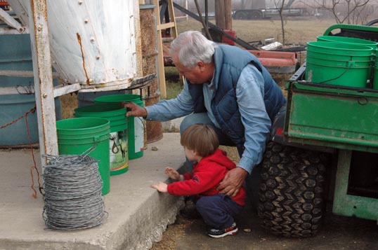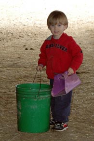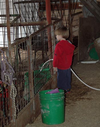 Once all the feed was in the bin I helped fill all the buckets and put them in the Gator so we could feed the animals.