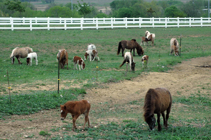 The "maternity ward" pasture during the day. All the mares are around the foaling barn at night.